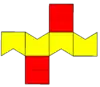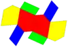 A topologically distinct elongated gyrobifastigium has square and equilateral triangle faces, seen as 2 triangular prisms augmented to a central cube. This is a failed Johnson solid for not being strictly convex.[4]
