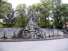 Most of his notable works were done for Berlin. This includes two more prominent fountains; the "Erika-Brunnen", on the Adam-Kuckhoff-Platz in the Wilmersdorf district (destroyed in 1943), and the Neo-Baroque style "Siegfried-Brunnen", a sandstone sculpture on the Rüdesheimer Platz, also in Wilmersdorf. One of his largest works is the "Kriegerdenkmal für gefallene Feldeisenbahner" (War Memorial to Fallen Field Railwaymen), on the Invalidenstraße in the courtyard of the former "Royal Museum of Transport and Construction" at the Hamburger Bahnhof (now the Museum für Gegenwart).[1]