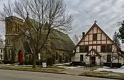 Emmanuel Episcopal Church Complex is a historic Episcopal church complex located at 37 W. Main Street in Norwich, Chenango County, New York. The complex consists of the church, parish hall, and education building. The church was designed by architect Isaac G. Perry and built in 1874 in the Gothic Revival style. It is a one-story, rectangular limestone structure, 116 feet long and 62 feet wide. The main facade features two square, engaged towers of uneven heights. The parish hall was built in 1915 and expanded with the education building.[2]