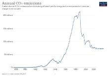 In the decade between 1989 and 1999, Romania saw decrease of its greenhouse gas emissions by 55%. This can be accounted for by a 45% decrease in energy use due to languishing economy, and a 15% decrease in its carbon intensity of energy use. In this period of time the carbon intensity of Romania's economy decreased by 40%, while Romania's GDP declined 15%. Romania's GDP has recovered significantly since then.[8]
