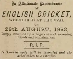 ashes taken to Australia.[16]