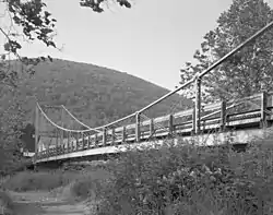 - ↑ "National Historic Landmarks & National Register of Historic Places in Pennsylvania". CRGIS: Cultural Resources Geographic Information System. Archived from the original (Searchable database) on 2007-07-21. Retrieved 2011-11-18. Note: This includes Susan M. Zacher and Vince Packard (n.d.). "National Register of Historic Places Inventory Nomination Form: English Center Suspension Bridge" (PDF). Retrieved 2011-11-18.