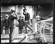 Lord Mayor of Sydney Ernest Samuel Marks boarding HNLMS Java visitingSydney