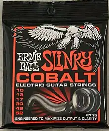 At his guitar store, Ball noticed that some younger players had difficulty bending the factory strings. He developed his own custom light gauge string sets and began selling them under the Ernie Ball brand in 1962. The lighter gauge strings and colorful packaging designed by Rolly Crump was successful with younger clients. These "slinky" strings went on to become popular with mainstream artists in the rock n' roll genre.[4]