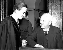 "The legend stems from individuals associated with the Weizsäcker defense. Former diplomats, such as the brothers Erich and Theo Kordt, played a key role in the effort, as did other members of the traditional upper class, which Weizsäcker represented. One of them was his defense lawyer, Hellmut Becker, the son of the Prussian culture minister, Carl Heinrich Becker, and another was Marion Gräfin Dönhoff, a young journalist who sharply criticized the trial in Die Zeit. They all knew that if they succeeded in exonerating Weizsäcker, they would have rehabilitated the national conservative, aristocratic and bourgeois upper class."[1]