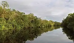 Esk River rises below Richmond Range, southeast of Tabbimoble, and flows generally to south through Bundjalung National Park towards its confluence with the northern arm of the Clarence River, northwest of the coastal fishing village of Iluka.[3] The river descends 28 metres (92 ft) over its 25 kilometres (16 mi) course.[2]