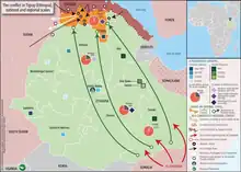 ![]() Territorial control as of December 2023[lower-alpha 1] (For a more detailed, up-to-date, interactive map, see here). Pro-federal government troops Anti-federal government rebels | |||||||