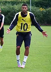 In July 2013, Toulouse accepted a reported £9.5 million bid from Premier League side Cardiff City.[16] However, personal terms were not agreed and the deal was not finalised. On 15 August 2013, he completed an €11m (£9.3m) transfer to Tottenham Hotspur.[17][18] The day before the announcement, Tottenham and France's first choice goalkeeper, Hugo Lloris told French newspaper L'Équipe that joining Tottenham would be a big step in Capoue's career, and stated his delight to see him join Tottenham.[19] Capoue made his debut for Spurs on 18 August, replacing Mousa Dembélé in a 1–0 win away to Crystal Palace at Selhurst Park.[20] He scored his first goal for the club on 29 January, in a 5–1 home loss to Manchester City, after coming on at half time for Dembélé.[21]