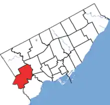 This riding lost territory to Etobicoke North and gained territory from Etobicoke—Lakeshore during the 2012 electoral redistribution.