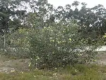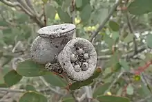 Bell-fruited mallee is found in coastal and sub-coastal areas among limestone and laterite and grows in gravelly sandy-clay soils. It occurs in coastal and near-coastal areas from the Stirling Range to the Fitzgerald River National Park and almost to Esperance to the east.[2][3] Subspecies lobata only occurs in coastal areas in a few places between Esperance and Hopetoun.[3]