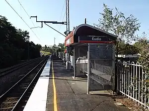 Eudlo railway station is located on the North Coast line in Queensland, Australia. It serves the town of Eudlo in the Sunshine Coast Region. It is one of few stations that can only fit 4 carriages onto the platform.