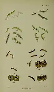 Figs. 6, 6a, 6b, 6c, 6dlarvae in various stages of growth 6e enlarged figure of two segments of 6