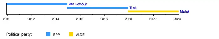 On 2 July 2019 the European Council elected the until then Belgian prime minister Charles Michel as the successor to Donald Tusk as President of the European Council for the period from 1 December 2019 to 31 May 2022.[6] He was re-elected in March 2022 for a second term for period from 1 June 2022 to 30 November 2024.[7]