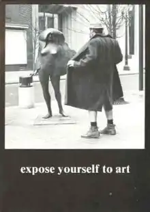 "Expose Yourself to Art" was the name of a poster which featured Bud Clark, future mayor of Portland, Oregon, seen flashing a bronze nude sculpture. The poster, and Clark himself—at the time a bar owner in Goose Hollow—became widely known.