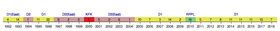 1999 3rd, "East" 5 30 16 6 8 60 42 54 R32 Lidrik – 17