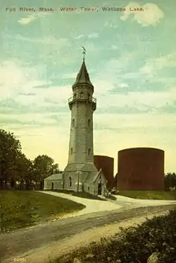 Fall River Waterworks is a 22-acre (8.9 ha) historic site located at the eastern end Bedford Street in Fall River, Massachusetts, along the shore of North Watuppa Pond. The property, which is still used as a water works for the city, contains the original pumping station, intake house and 121-foot (37 m) tall standpipe water tower.[2] The system was originally built between 1872 and 1875, and expanded or upgraded many times. It was added to the National Register of Historic Places in 1981.