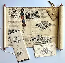 Josiah Harrist, for Kill Screen, highlighted that Fall of Magic is centered on the scroll and "the tactile experience of unfurling the world"; he called the game a "strange beast" since "it lacks mechanical structure, yet is confined to its own rigid narrative".[3] Harrist highlighted how this is the "RPG for dreamers" compared to traditional role-playing games, such as Dungeons & Dragons, with different motivations of play.[3] He stated that "a good game of Fall of Magic entails players getting exactly what they want, and deciding as a group what makes a good story. The game engine enables players who aren't 'storytellers' to tell a good story".[3]