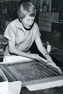 ![]() Fanny Buss screenprinting in 1964 | |