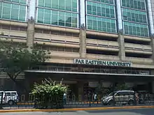 Far Eastern University (Filipino: Pamantasan ng Malayong Silanganan), also referred to by its acronym FEU, is a private non-sectarian university in Manila, Philippines. Created by the merger of Far Eastern College and the Institute of Accounts, Business and Finance, FEU became a university in 1934 during the term of its first president, Nicanor Reyes Sr.[2]