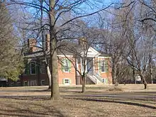 Farmington, an 18-acre (7.3 ha) historic site in Louisville, Kentucky, was once the center of a hemp plantation owned by John and Lucy Speed. The 14-room, Federal-style brick plantation house was possibly based on a design by Thomas Jefferson and has several Jeffersonian architectural features. As many as 64 African Americans were enslaved by the Speed family at Farmington.