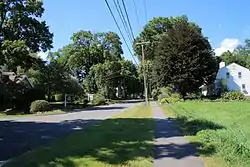 The town of Farmington was settled in 1640 and incorporated in 1645. It flourished during the 18th century, with a variety of trade and industry, that for a time rivaled the economic importance of Hartford. In the early 19th century it benefited for a time from the construction of the Farmington Canal, which passed through the town. The c. 1830 brick Union Hotel, located in the town center, was built to serve travelers on the canal, and is now an administration building for Miss Porter's School. The town's Main Street was laid out at an early date, and retained its appearance in part because the town's economy declined with the advent of the railroad (which bypassed the town) and the decline of the canal.[2]