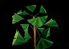 The monumental paintings of Shaffer's Greenhouse Effect exhibition (1991) demonstrate a shift in theme, as she employed minimal color-fields to suggest haunted landscapes affected by eco-devastation.[13] Describing them, critic Michelle Grabner wrote, "This ecological commentary combined with Shaffer's choice of scale, interest in color, and seductive mark making evokes the ‘tainted sublime.'"[4] In her "Healing Plants" works (1994–Present), in works such as Aloe, Lungwort or Gingko (1994), Shaffer combines "careful study, connection and fine draftsmanship" to create "portraits" of plants that echo Matisse cutouts, and which convey and pay tribute to the endurance, healing powers, and necessity of plants to human survival.[5] Shaffer's recent paintings, Passenger Pigeons, reflect on the extinction of wildlife species in the modern era.[10]