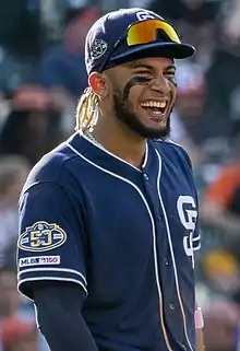 Fernando Gabriel Tatís Medina Jr. (tah-TEES; born 2 January 1999), nicknamed "El Niño" or "Bebo",[1] is a Dominican professional baseball shortstop and right fielder for the San Diego Padres of Major League Baseball (MLB) he is currently playing winter baseball for the Estrellas Orientales of the Dominican Professional Baseball League. He is the son of former MLB player Fernando Tatís Sr. Tatís Jr. made his MLB debut in 2019, won the Silver Slugger Award in 2020, and was named an All-Star in 2021, before missing the 2022 season due to injury and a PED suspension.