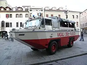 The Fiat 6640A is an Italian wheeled amphibious armoured vehicle produced from the early 1950s to the 1980s for the Italian government. The 6640A carries a crew of two, protected by four mm (0.16 in) thick armour, and is powered by a six-cylinder diesel engine providing a top speed of 90 km/h (56 mph).