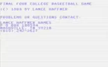 Final Four College Basketball is a game in which college basketball is simulated in a text-only game featuring 230 teams.[1]