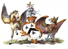 The Finch family is believed to be descended from Henry FitzHerbert, Lord Chamberlain to Henry I (r. 1100–1135). The name change to Finch came in the 1350s after marriage to an heiress of the Finch family.[2] The Herbert family of Wales, Earls of Aylesford, Earls of Pembroke, share common ancestry[3] but bear differenced arms.[4]