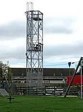 A drill tower is a tower and training facility for firefighters. It is usually built within a fire station facility for routine exercises and training.[1] The drill tower is typically a multi-level structure simulating high-rise buildings. Heights vary by location.