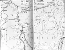 A pause in the EEF's advance was necessary to enable the lines of communication to be lengthened and strengthened. While this work was being carried out, the mounted brigades were reorganised into two mounted divisions.[11][12] This was prompted by the arrival of the 6th Mounted Brigade and 22nd Mounted Brigade from the Salonika campaign. Instead of grouping the two new mounted brigades with the 5th Mounted Brigade to form a new Imperial Mounted Division, the 3rd Light Horse Brigade was transferred from the Anzac Mounted Division to the new division, and replaced by the 22nd Mounted Brigade. The Imperial Mounted Division, established 12 February 1917 at Ferry Post on the Suez Canal under the command of Major General Henry West Hodgson, was established with the 3rd Light Horse Brigade and 4th Light Horse Brigade (which was in the process of formation at Ferry Post and was scheduled to leave for the front on 18 March) along with the 5th and 6th Mounted Brigades.[13][14][15] Within Dobell's Eastern Force, General Philip Chetwode commanded the Desert Column, which included the Anzac Mounted Division, the partly formed Imperial Mounted Division, and the 53rd (Welsh) Division of infantry.[2] After the 42nd (East Lancashire) Division left for the Western Front, Dobell's Eastern Force consisted of four infantry divisions; the 52nd (Lowland) Division, the 53rd (Welsh) Division, the 54th (East Anglian) Division and the 74th (Yeomanry) Division, which had recently been formed by converting yeomanry regiments into infantry battalions.[2]