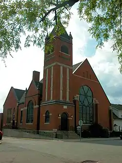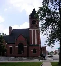 The First Presbyterian Church of Hartford City is a Presbyterian church in Hartford City, Indiana, United States. The edifice is the oldest church building in a small city that at one time was a bustling community with as many as ten glass factories – and over 20 saloons.[1][2] Located at the corner of High and Franklin Streets, the church is part of the Hartford City Courthouse Square Historic District. The church was added to the National Register of Historic Places in 1986.
