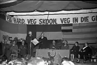 The Flag of the National Party (Afrikaans: Vlag van die Nasionale Party) was the flag of the ruling National Party, of South Africa during apartheid.[1] The design was a blue hunting horn on an orange background. The flag was created in 1939 and abandoned in 1993.[1]