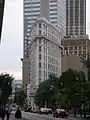 The English-American Building, commonly referenced as the Flatiron Building, is a building completed in 1897 located at 84 Peachtree Street NW in downtown Atlanta, Georgia, on the wedge-shaped block between Peachtree Street NE, Poplar Street NW, and Broad Street NW. It was completed five years before New York's Flatiron Building, and shares a similar prominent flatiron shape as its counterpart. It was designed by Bradford Gilbert, a Chicago school contemporary of Daniel Burnham, the designer of the New York building. The building has 11 stories, and is the city's second and oldest standing skyscraper. The Flatiron building is protected by the city as a historic building in the Fairlie-Poplar district of downtown, and is listed in the National Register of Historic Places.[5]