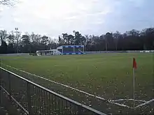 The club initially played at the Views (now Campbells Close), before moving to Watsons Meadow.[2] In 1923 the club were granted the use of a site on Crookham Road by Lord Calthorpe,[2] with the ground becoming known as Calthorpe Park. The first match at the new ground was played on 3 March 1923.[2] The ground currently has a capacity of 2,000, of which 250 is seated and covered.[1]