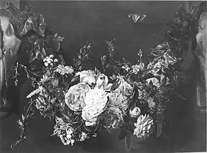 Flower Garland with Butterfly is a lost painting by the Flemish artist Michaelina Wautier. It is suspected that the painting is a pendant of a similar still life, Flower Garland with Dragonfly. Both pictures have skulls at either side, follow a similar arrangement of the flowers, and were both painted in 1652.[1]
