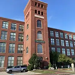 In 1865 an addition to the building of 70 feet (21 m) was made on the east side and 50 feet (15 m) on the west side, making two wings on the ends. In 1867 the mill had 26,000 spindles. The company owned thirty acres of land on the two sides of the river and seventy-five tenements, and made its own gas, which it also supplied to the town. In 1877 the capital stock was $600,000; the number of spindles, 35,000; the number of employees was five hundred and fifty. The buildings of the company were a factory, office, storehouse, store, and one hundred tenements.[2]: 566–567