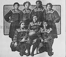 The Fort Shaw school had boys' basketball, football, and track teams that competed against regional high schools and colleges from the schools opening.[4][7] Originally Fort Shaw girls were only offered a "physical culture class," but by 1897 basketball was introduced to the Fort Shaw girls by student and "Indian Assistant" Josephine Langley.[5] Langley was introduced to the sport after a semester at the Carlisle Boarding School and was supported by superintendent Frederick Campbell in establishing basketball as an indoor sport for students to play during the winter.[5] The dance hall of the Fort Shaw military establishment was converted into a court and in 1902, a girls team was started with a team of seven girls who played together for the next three years.[4][2] The reception to the girls' basketball team was just as enthusiastic as for the boys because in most Native American cultures, girls were encouraged to play sports with the same intensity as the boys. It was also the only sport girls were allowed to participate in.[2]