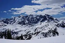 Fortress Mountain is a 8,671-foot (2,643 m)[1] peak in the Cascade Range located about 15 miles (24 km) west of Lake Chelan in Chelan/Snohomish Counties, Washington, United States. It straddles the border between the Mount Baker-Snoqualmie National Forest and the Wenatchee National Forest, and is also part of the Glacier Peak Wilderness.[2] Fortress Mountain is the highest point on Chiwawa Ridge, and other notable peaks on this ridge include Napeequa Peak, Buck Mountain, Brahma Peak, Bandit Peak, Mount Berge, Helmet Butte, and Chiwawa Mountain.[2]