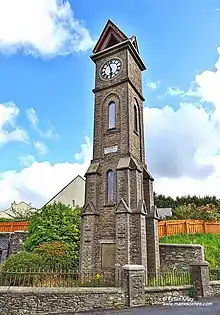 Foxdale's motto "Moyrn Y Valley Veg" is displayed in Manx underneath the emblem of the famous Foxdale Clock Tower (showed right) and can be translated into "Pride Of The Village" in English.
