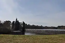 The Framingham Reservoir No. 1 Dam and Gatehouse is a historic water works facility in Framingham, Massachusetts. This complex is located at the end of Framingham Reservoir No. 1, which is also known as the Stearns Reservoir, off Winter Street and north of Long Avenue. Constructed from 1876 to 1878 as part of an expansion of the water supply of the city of Boston, this was designed by its first city architect George A. Clough. The historical purpose of the reservoir, which was located at the confluence of two branches of the Sudbury River, was primarily to control the river's water level, and secondarily to provide reserve supply capacity. The reservoir's reserve capacity was generally used only as a backup supply, as the reservoir's muddy bottom made it a less desirable source than reservoir No. 3 upstream. However the reservoir No. 1 system was nonetheless important due to its role in controlling the flow of the river downstream, and due to the gatehouse which controlled the water flows for all the Framingham reservoirs into the Sudbury Aqueduct. Reservoir No. 1 is no longer maintained as a reserve water source, although it is still owned by the Massachusetts Water Resources Authority, successor to the Boston Water Board which oversaw its construction. MWRA retains ownership as the gatehouse contains the connection between Reservoir No. 3 and the Sudbury Aqueudct which remain part of the emergency water systems.[2]