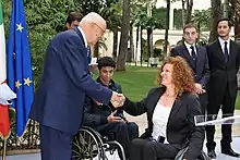 Francesca Porcellato (born 5 September 1970) is an Italian disabled sportsperson who competed at international level in three different sports. Porcellato began her sporting career as a wheelchair racer competing in six Summer Paralympics before switching to Para Cross-country skiing where she won gold at the 2010 Winter Paralympics in the 1 km sprint.[2] In 2015, she became six-time UCI Para-cycling World champion.[1]