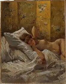 Francesco Netti, Nuda sul letto, oil on canvas, 1884–1886, Pinacoteca di Bari.