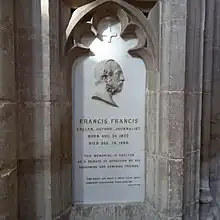 These are the closings lines to the poem The Angler's Wish by English writer Izaak Walton.[1] A white marble mural monument to Francis was erected in the North Aisle of Winchester Cathedral by his friends, showing a medallion-portrait and another quotation by Walton:[2]