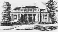 After leaving Japan Hall returned to Elmira and split his time between that city and New York. He continued to pursue his business interests and became the founder, First Vice President and major stockholder in the Syracuse Chilled Plow Co.[21] His real estate holding ranged from New York to Puget Sound. He also became a major philanthropist, supporting Elmira College, the Steele Memorial Library, the Arnot-Ogden Hospital and other charities in Elmira.[22] In 1902 he set out to build the Hall Memorial Library a splendid $40,000 structure in Ellington Connecticut to honor the educational work of his father and brother Edward. When it was completed in 1903, the New York Tribune called it "one of the finest gifts ever made to a Connecticut town."[23]