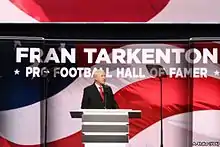 Tarkenton was inducted into the Georgia Sports Hall of Fame in 1977,[22] the Pro Football Hall of Fame in 1986,[19] the College Football Hall of Fame in 1987,[23] and the Athens, Georgia Athletic Hall of Fame in 2000.[24]