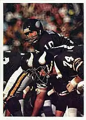 On January 27, 1972, Tarkenton was traded back to the Vikings for quarterback Norm Snead, receiver Bob Grim, running back Vince Clements, a first rounder in 1972 (24th overall–Larry Jacobson, defensive lineman) and a second rounder in 1973 (40th overall–Brad Van Pelt, linebacker).[14][15][16] Tarkenton led the Vikings to three National Football Conference championships, but the Vikings lost each ensuing Super Bowl. In the 1974 Super Bowl, Minnesota lost to the Miami Dolphins 24–7 in Houston. They lost the 1975 Super Bowl to the Pittsburgh Steelers 16–6 in New Orleans, and (in Minnesota's last Super Bowl to date) lost the 1977 Super Bowl to the Oakland Raiders 32–14 at the Rose Bowl in Pasadena, California.