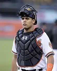 On the same day he was designated for assignment by the Royals, Peña was traded to the Baltimore Orioles for cash considerations.[6] He played in 24 games for the Norfolk Tides of the Class AAA International League, before he was promoted to the major leagues on May 31, 2016, while Orioles backup catcher Caleb Joseph went on the disabled list.[7] On June 2, 2016, Peña started and debuted for the Orioles. He went 2 for 4 with 2 RBI and hit his first major league home run to help the Orioles defeat the Red Sox 12–7. Peña ended his 2016 season with a .200 batting average. On February 10, 2017, Peña was designated for assignment.[8]