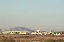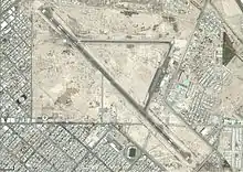 The airport is situated within the Torreón urban area, 6.5 kilometres (4.0 mi) to the east of the city center, at an elevation of 1,124 metres (3,688 ft) above sea level. The passenger terminal offers a range of services typical of a regional airport, including check-in facilities for both domestic and international flights, VIP lounges,[3] parking areas, car rental services, taxi stands, and a departure concourse with 2 gates, one of which is equipped with a jet bridge. The terminal underwent renovations in both 2003 and 2023.[4] The apron has 7 stands capable of accommodating narrow-body aircraft.